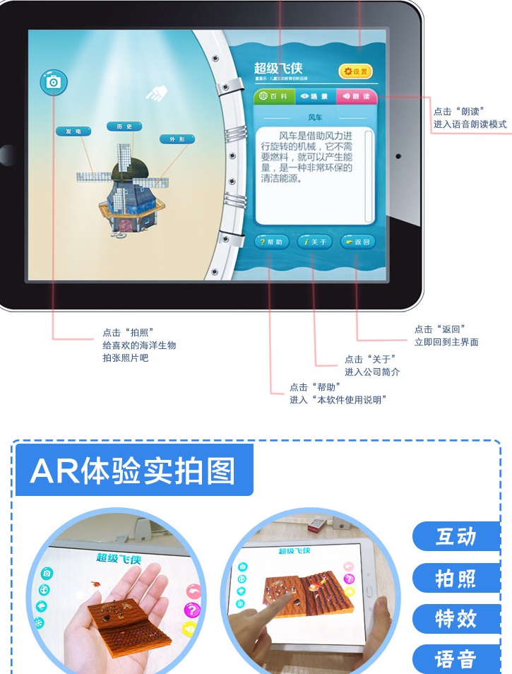 这套书全景再现了动画片里的完整故事,并添加了AR增强现实技术,只需手机一扫,便呈现出真实立体的超级飞侠魔法世界。每个AR视野,都是对书中知识点的多角度介绍,寓教于乐,让孩子们更好地学习、掌握丰富的科学文化知识。