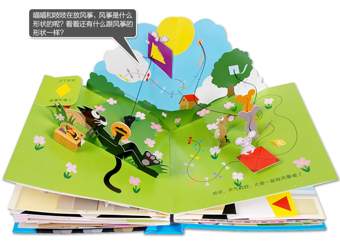 《喵喵和吱吱》是美国立体书大师戴维·佩勒姆的经典之作,受到全世界儿童的喜爱。它囊括了颜色、形状、数字、反义词四大方面36个基础知识点。在形式上,它采用立体精美的纸艺形式展示,结合翻翻页、推拉等互动形式,吸引宝宝注意力。而且直观生动的演示,有利于宝宝理解书中所讲知识,更在新鲜的体验中提高对所学知识的记忆力,培养专注力,开启创造力。