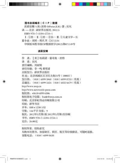 埃莉诺·霍奇曼·波特(1868—1920)是美国著名童话作家。她出生于新罕布什尔洲的一个小镇,年轻时曾是当地有名的歌手;1901年波特放弃歌唱生涯正式开始写作,1913年创造出了她最为成功、也是最具影响力的小说人物:波莉安娜。它几乎一夜之间畅销全美,深深影响了美国乃至世界各国民众的生活。