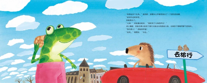 这是一个很有意义的故事,故事的主角是一只青蛙和一只刺猬,青蛙从来都没离开过自己的村庄,而刺猬的到来,却改变了青蛙。故事一开始就设置了一个悬念,这个悬念同样也是青蛙在旅途中一直想知道的,那就是,刺猬究竟要带青蛙去哪里?或者说,这场旅途的终点究竟在哪里?这本书里提到了一个关键词,那就是“在路上”。在路上不仅是一种生活状态,更是一种人生态度。先哲们经常把人生比喻成一场旅途,而人生中的种种经历和际遇,相聚和分离,险境和美景,更是这场旅途的滋味所在。