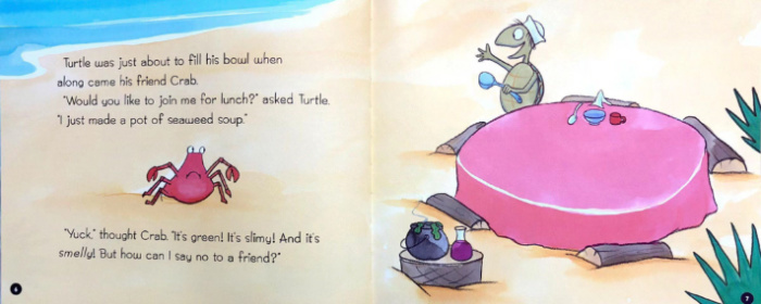 海草汤--配套成组/成套海龟做了一大锅浓稠的海草汤。正当他摆开餐具杯子、汤匙、碗、餐巾时,它看到螃蟹,于是邀请螃蟹一起享用海藻汤,于是它又去拿了一组餐具。接着,有一位朋友出现了,桌上需要多少组餐具呢?海龟橱柜里的餐具还够用吗?