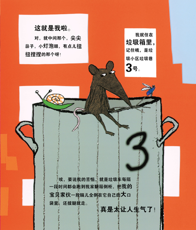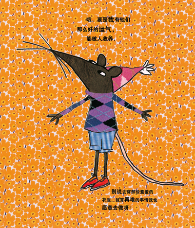 每个人都盼望有自己的家,一个温暖的家,晚归的时候,亮着灯光等着你。这只有着尖尖鼻子,小灯泡眼的褐色小老鼠也不例外。小老鼠的南美栗鼠朋友有着珠光宝气的家;另一个泰国猫朋友有着自由自在的家,主人从来不管它;大耳朵兔成天跟着主人表演马戏,过着刺激的生活;还有苏格兰小狗安德鲁,他的主人会喂它好吃的晚餐,还会整晚地和它一起玩拼图。可是小老鼠一直都没有找到主人,直到有一天近视的福士古先生以为小老鼠是只猫,认养了它。它能为福士古先生做好多事,于是他们就相依为命了。这是一个欢喜的结局,这也是一个温暖的主题。画面充满了随意和孩子气,富有动感。