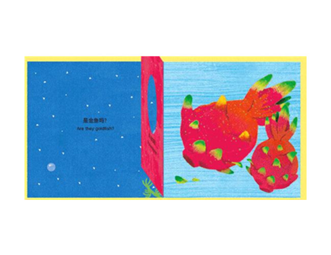 “‘宝宝没想到’主题认知洞洞书”是儿童诗人巩孺萍把丰富的生活常识、有趣的图画创意和巧妙的洞洞模切设计相结合,根据婴儿心智特征专门为0—3岁宝宝创作的认知洞洞书。作者按照认知的主题将原本完全不相关的两种事物通过好玩的创意联系在一起,让宝宝在翻来翻去、戳洞洞的过程中既认识了两种事物,又了解了这两种事物的特性与共性。同时,这部书稿的语言充满了韵律感,让宝宝被童诗般的汉语言中蕴藏的美感充分滋养,在好玩的洞洞游戏中认知世界、启蒙英语,同时提升观察能力、联想能力和理解能力。 《甜蜜果园》是本系列中的一本,作者通过宝宝在生活中常见的事物,比如金鱼、石头、气球等来帮助孩子认识各种各样的水果。比如,作者紧紧抓住金鱼的尾巴和火龙果的果皮之间的相似之处、气球和大柚子之间的相似之处来引导孩子从细节处观察和认识水果,并了解不同水果的形态特征,同时也启发孩子展开想象、积极联想,提升观察力。