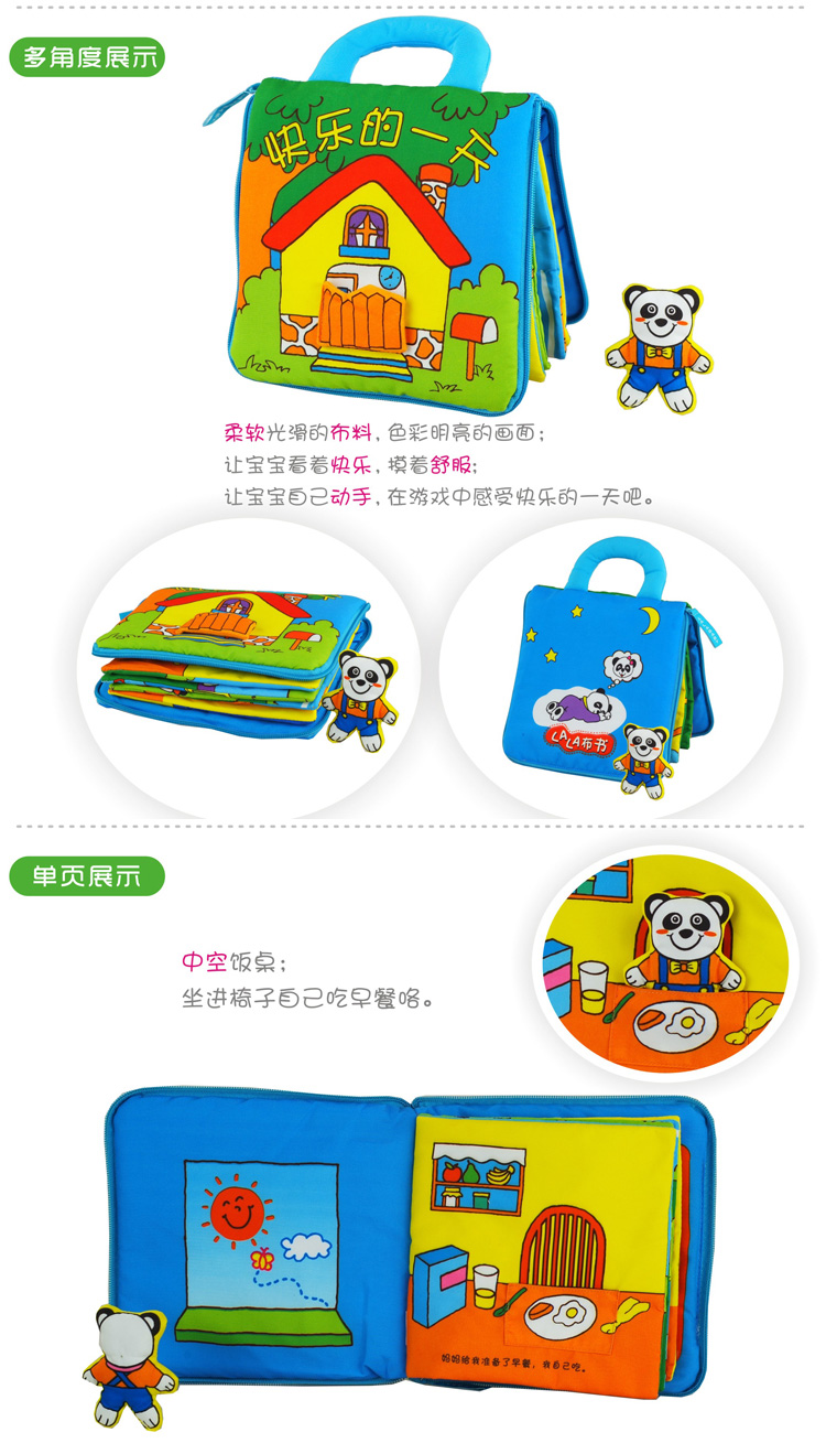 商品说明独立的熊猫宝宝布偶、可打开的门、可坐着吃饭的餐椅、可以坐的婴儿车、可以骑的小马、可乘坐的飞机、摇动着的秋千、洗澡用的小毛巾、活动的小被子、可翻开的小布书……小熊一天的生活需要宝宝来安排,宝宝在您的指引下一定会把小熊的一天安排得井井有条……书中安排了许多插件,宝宝会很乐意去摆弄它,将活动小件放进、拿出,每一个细节都体现着宝宝大脑的活动。让您的宝宝动动手,来加入这些游戏吧!