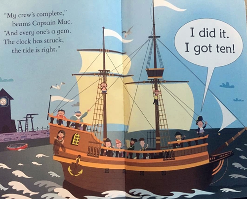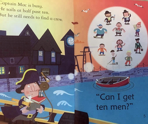 《Mac船长》:Mac船长很忙,他需要招10个船员,搞卫生的,看地图的,很快他找到了九个船员。最后一个被Pam拿到了,因为她很擅长爬高。现在Mac船长可以出航了。本书为初级儿童读物系列中的第一级(共22本),内容词汇均简单,适合幼儿和初学者亲子共读:自然拼读the-very-first-reading-level。整体编排巧妙,专为语言启蒙和亲子阅读而设计,左边页面的文字字体略小由家长朗读并加以解释,而右边的文字字体大而简单朗朗上口,适合让孩子大声拼读出来,这样搭配,孩子的阅读成就感大大提升。书末附有几个基于故事情节的亲子小问答以巩固阅读的乐趣和收获,所有的问答都附有答案哦。
