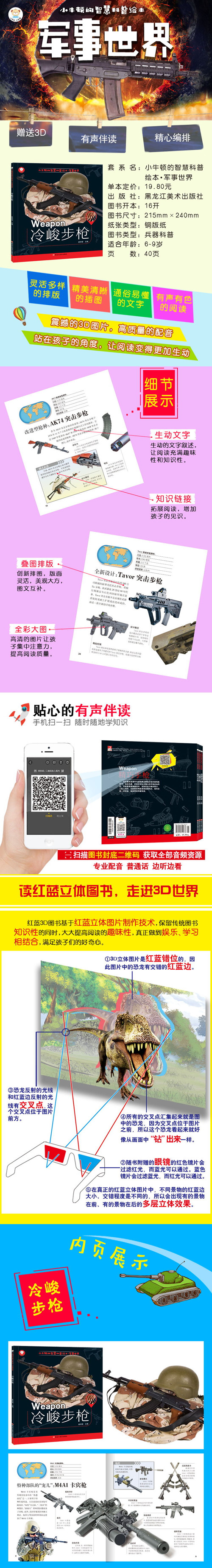 好奇和求知是人类的天性,这样的天性在孩子们的身上体现得尤为明显。孩子们的思维天马行空,他们的疑问更是数不胜数,这套《小牛顿的智慧科普绘本》能够满足孩子们的好奇心,让孩子们体验探索知识的乐趣。本套丛书涵盖了孩子们感兴趣的动物、恐龙、军事、人体等多方面知识,并采用全新的排版形式,让孩子们畅享图文阅读新体验。本套丛书赠送音频文件,扫码即可阅读,孩子们可以体验有声阅读的新潮流。