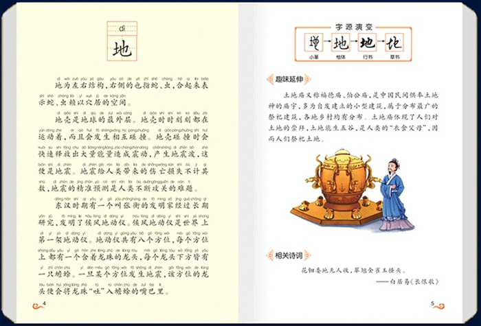 精美插图:全套图书附有色彩丰富的精美插图,诠释汉字的形与意的同时帮助孩子加深理解。