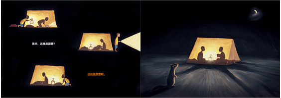 兄弟俩早早搭好了帐篷,等待天黑之后去露营。夜晚的世界和白天的世界会有所不同吗?弟弟的期待似乎又要落空了:没有奇迹,没有新奇事物,甚至和平常没有什么不同……但最后奇迹发生了。奇迹发生前,他们在讨论着奇迹会不会发生;奇迹发生时,他们在讨论中暗自惊讶,又暗自担心;奇迹结束后,他们从梦中醒来……平凡生活里,曾有过多少大大小小的冒险,我们自己却浑然不觉?