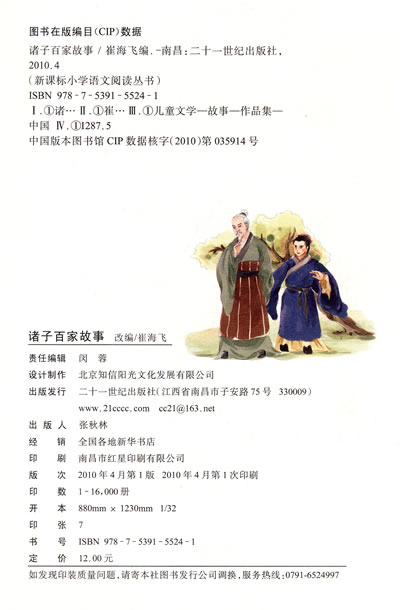 春秋战国时期是一个风云变幻的时代,王权衰微,诸侯争霸,面对这样的社会现象,诸多思想家对人生、政治等问题提出自己的看法和主张,于是各种思想、学说纷纷出现,终于形成了“百家争鸣”的局面。 本书精心选编了诸子百家中儒家、道家、法家、墨家、名家、纵横家等代表人物的故事,情节简单,寓意深刻,饱含着历史人物对自然、社会、政治等问题的深刻见解和独到智慧,有助于广大小读者从中汲取睿见卓识,获得审美享受。