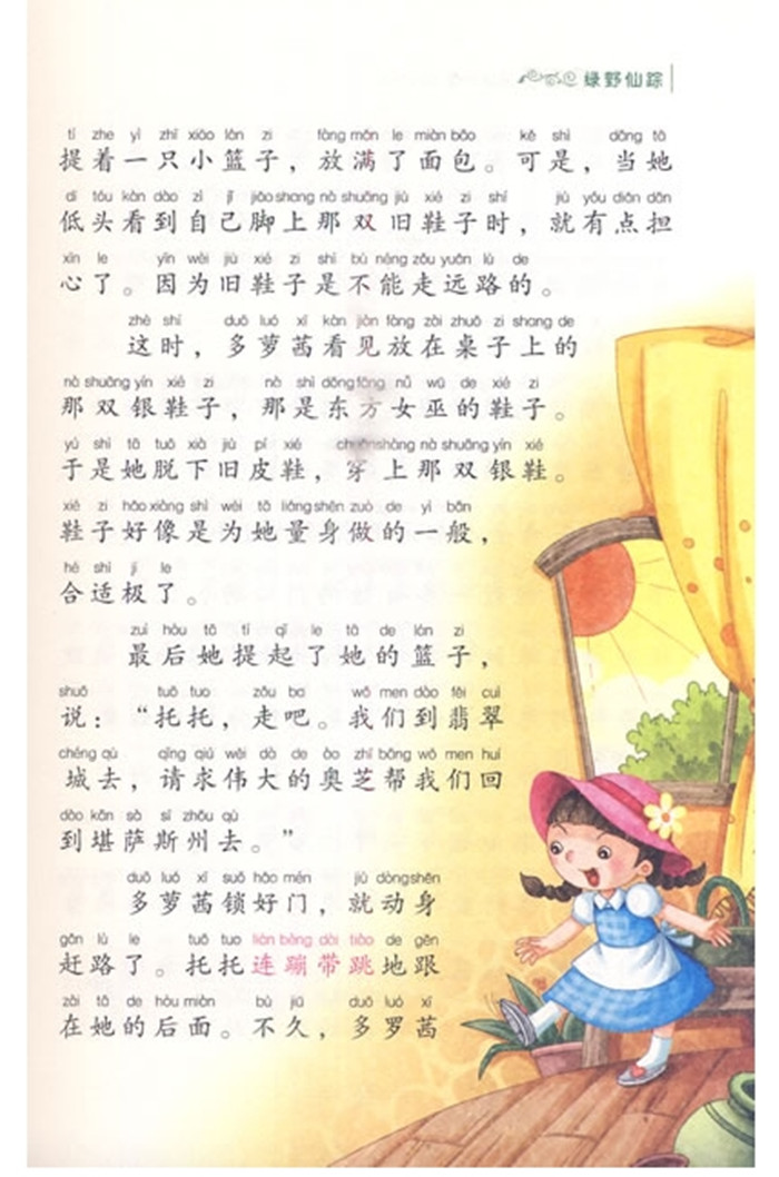 《绿野仙踪》讲述的是小女孩多萝茜的历险故事。一天,一阵可怕的旋风把多萝茜、小狗托托连同屋子一起刮到了陌生的奥芝国。为了回家,多萝茜决定到翡翠城向魔法师奥芝求助。一路上,她结识了三个朋友:想要脑子的稻草人、想要心的铁皮人和想要胆量的狮子。在历险的过程中,多萝茜帮助伙伴们改掉了自己的缺点;他们相互帮助,克服种种危险,最后在女巫甘林达的指点下,多萝茜带着小狗托托,终于回到了自己的家乡,而朋友们也找到了自己的幸福。这个故事跌宕起伏、曲折动人,难怪《绿野仙踪》成为各国儿童最喜欢的现代童话故事之一,足以与安徒生童话和格林童话媲美。
