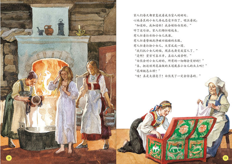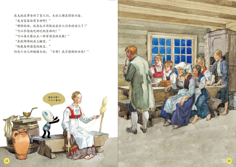 这是来自挪威的童话故事,本书的插画采用透明水彩绘制而成,用水调和透明颜料在纸上晕染,使画面清新通透,很好地描绘出挪威的风光与文化。