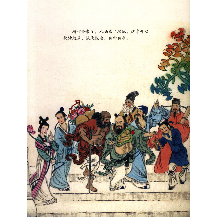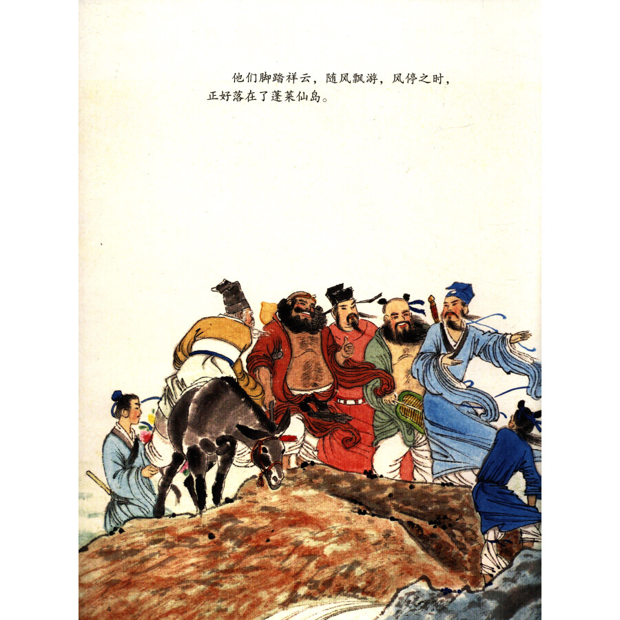 《八仙过海》八仙参加完蟠桃盛会,驾云飞临东海。在吕洞宾的提议下,大家用自己的法器变成渡海的工具。途中,龙太子把蓝采和捉了去,吕洞宾一气之下杀了龙太子。面对老龙王的不依不饶,汉钟离拿出东华仙给的仙丹,让龙太子起死回生。在张果老小毛驴的带领下,八仙走出暗无天日的囚龙狱,各自踏上了自己的道路。