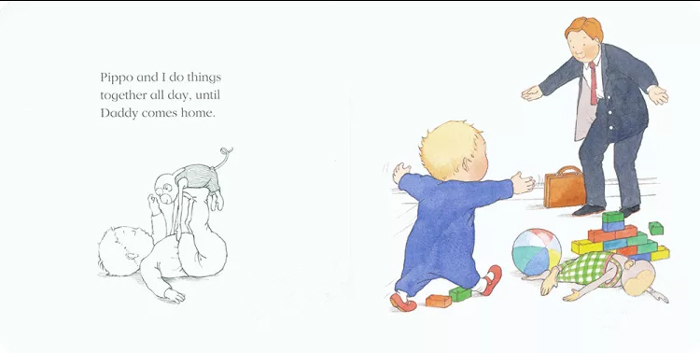 这本书描绘了小男孩Tom和长臂猿Pippo独自在家的场景,真实温馨。