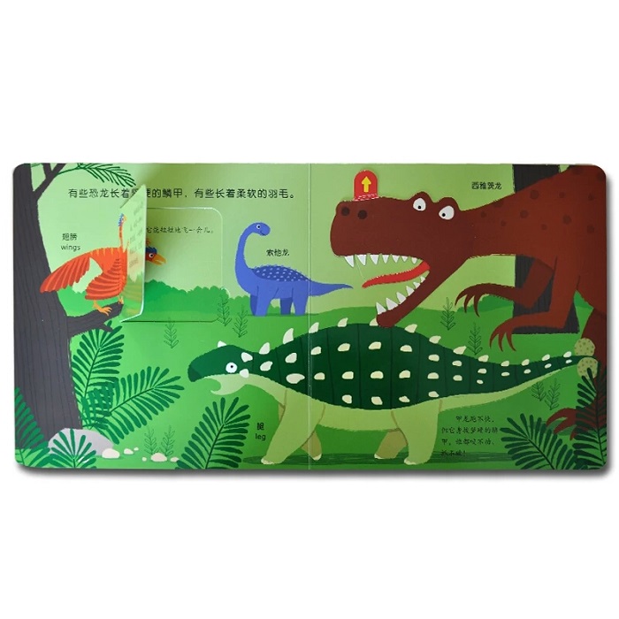 恐龙都是大块头吗?它们爱吃什么?身上有羽毛吗……打开这本书,宝宝不仅能通过推拉翻转滑等趣味游戏,了解恐龙多方面的知识,还能提高专注力、想象力、探索欲、双语学习的兴趣及小手灵活性。