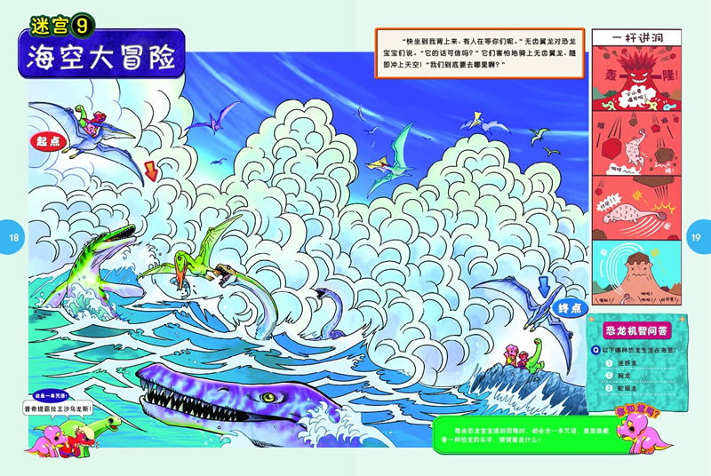 这里有恐龙迷宫、恐龙小漫画、恐龙趣味找找看、恐龙小常识、恐龙机智问答……还有恐龙迷你图鉴!