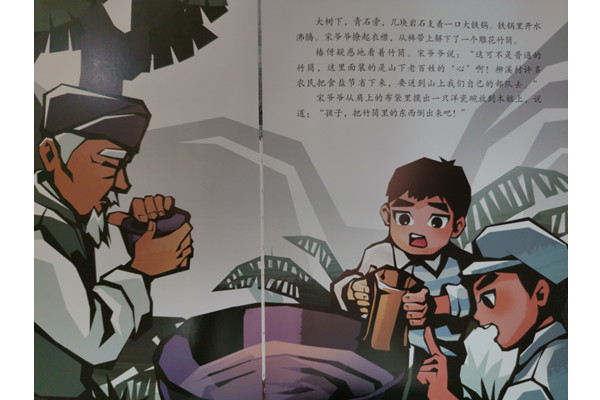 《闪闪的红星》(绘本)改编自作家李心田的同名小说《闪闪的红星》。故事的主人公潘冬子成长在革命的家庭,很小的时候,父亲就离开家乡参加了红军的队伍,母亲入党后在家乡柳溪村掩护赤卫队和游击队开展斗争。旧社会苦难的压迫和父母不屈不挠的斗争激励了潘冬子。他富有革命理想、战斗精神,和恶霸胡汉三机智勇敢地周旋。在宋爷爷的抚养和党组织的照顾下,历尽了千辛万苦的潘冬子找到了革命队伍,走上了新的征途。潘冬子机智勇敢的小英雄形象深入人心,成为一个时代的经典。