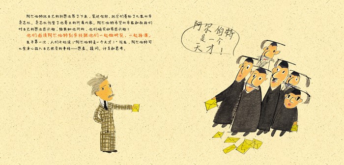 3. 珍妮弗·伯恩利用简单易读的文字,在讲述爱因斯坦成长故事的同时,向孩子们传递了正向价值观,比如善于观察、勤于阅读与学习、醉心思考与探索等。同时也向家长们传递了正向的教育观:要正面看待特别的孩子,善于引导;要鼓励孩子想象、观察和思考;实现远大的理想,需要我们不断阅读、学习和探索;当遇到一时的挫折时,应该停下来思考,但决不放弃……