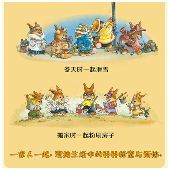 这是一套来自法国的绘本,适合2-6岁孩子阅读。套书共20册,包括辑“我不怕困难”和第二辑“我会爱自己”,每册一个小主题,包括解决问题、帮助别人、保护自己、安全意识等等。这套书讲述了五只性格迥异的小兔子在爸爸和姑妈的细心教育下,彼此相互帮助,在亲情与爱的滋养中快乐成长的故事。一个个奇妙、有趣、刺激的小故事,潜移默化地培养孩子的好习惯、好品格,对父母的家庭教育也具有很好的指导意义。