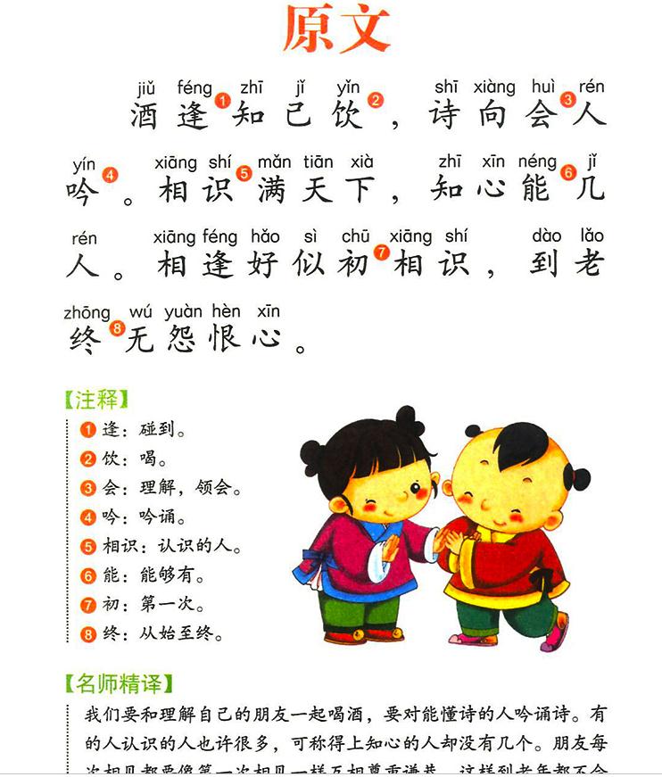 《增广贤文》收录了大量有韵的谚语和文献佳句,内容十分广泛,从礼仪道德、典章制度到风俗典故、天文地理,几乎无所不含,但主旨是讲人生哲学、处世之道。全书以韵文的形式,将格言排列在一起。那些精辟的格言警句绝非凭空而来,它们或来自古代文化典籍,或源于民间俚谚俗语,是对中国人处世经验、智慧和原则的总结,含有深刻的哲理,读来发人深省。尤其值得注意的是,这是一部老幼皆宜的著作,其中的许多格言至今仍在广为流传。