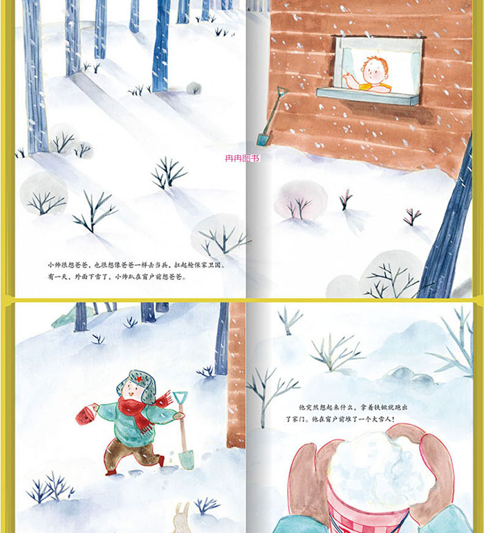 小帅的爸爸是一位边防兵,每年只能回家一次,小帅很想爸爸。妈妈也很想爸爸,但是妈妈总是不表露出来,小帅很喜欢爸爸送的玩具枪,他希望自己也能像爸爸一样保家卫国。有一天,下起了大学,小帅太想爸爸了,就堆了一个雪人,给他带上军帽,插上玩具枪,妈妈给它带上围巾。雪人真像爸爸。这是一本适合低幼的国内原创少儿彩色绘本。这本故事书,看似简单,有大篇幅的绘画,字数相对比较少,体现出一种简洁明快的美感,是一本充满了诗情与创意的图画书。也是一本能让孩子们迅速产生共鸣和认同感的图画书。 “熊”孩子犯了错,闯了祸,大人们最先想到的就是批评。书中所选的小朋友们的坏习惯和遇到的事例都是孩子们在成长中会遇到的,非常贴近生活。家长们可以为孩子每天阅读几个故事,告诉孩子们其中的道理,生动的图画、有趣的语言,能很容易地让孩子们融入其中,感同身受,从而达到学习成长的效果。是成长期的小朋友阅读的良选。