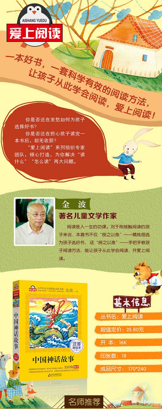 《小学生语文新课标必读书系:中国神话故事(注音美绘本)》有孩子们感兴趣的趣味百科知识,有助于拓宽孩子的知识面,培养孩子的科学探索能力:有中华传统文化经典,潜移默化影响孩子为人处世的准则,为孩子奠定正确的人生观、世界观与价值观,培养孩子的良好品质;有新鲜有趣的益智知识,可以让孩子开启大脑风暴,训练发散思维,发掘探索能力,寓教于乐,启迪智慧。