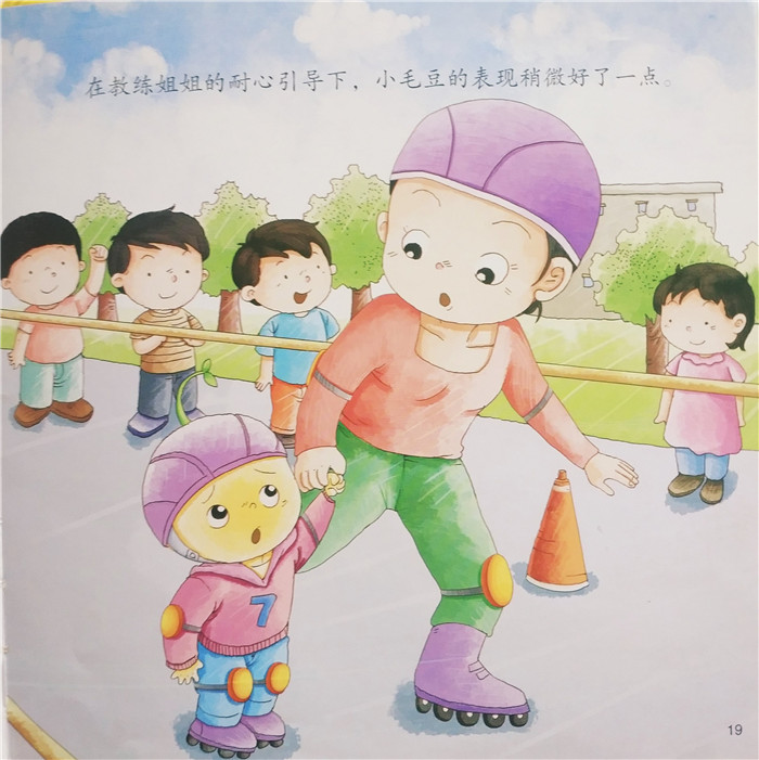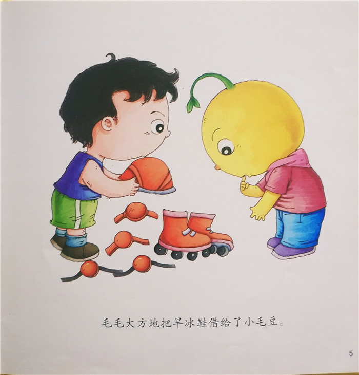 小毛豆接到好朋友毛毛的电话,说他买了新的旱冰鞋,邀请小毛豆到花园里玩。