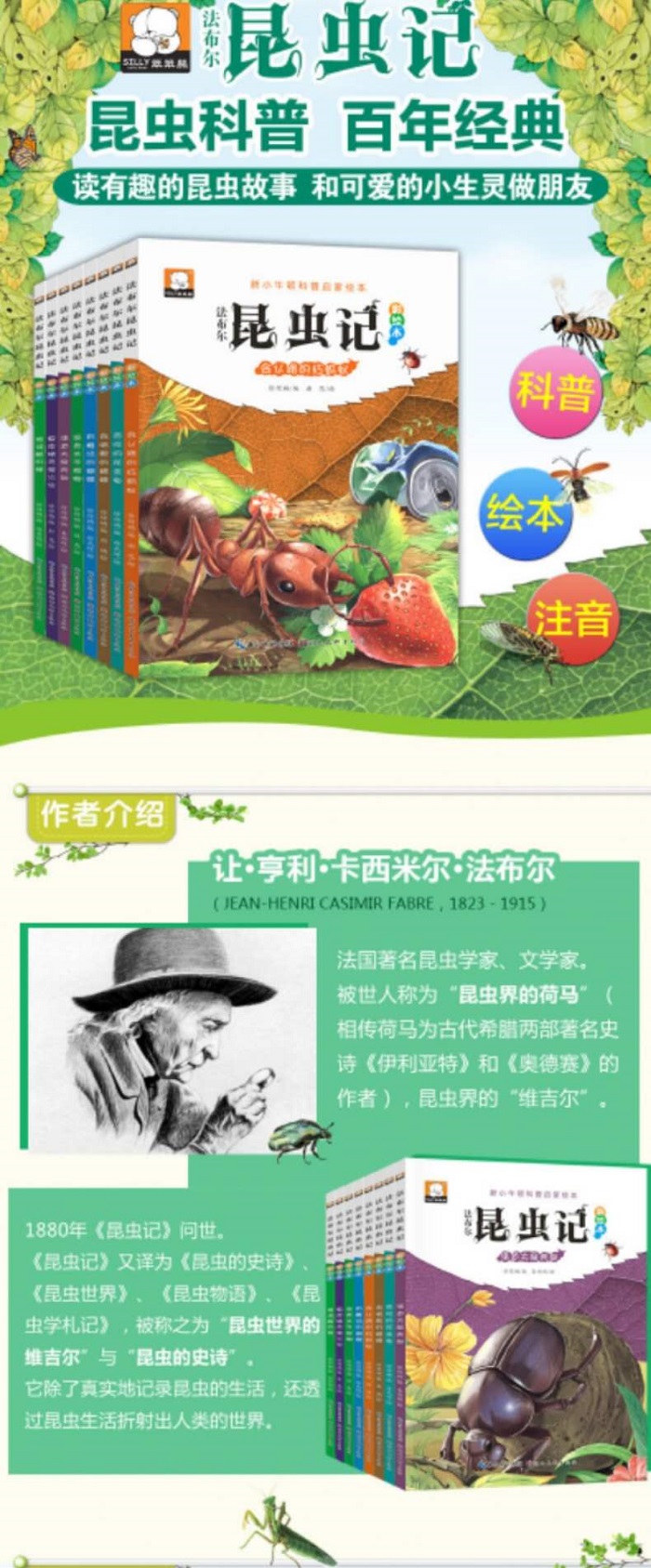 这套书未全部看完,但看了几本,觉得还不错的,把大千世界的观察描述得非常仔细,加有图片,更让小朋友们非常喜爱。平时并未注意的昆虫,能在书中描述得如此可爱,让宝贝很喜欢,可能通过实物和书本结合,效果一定很好!