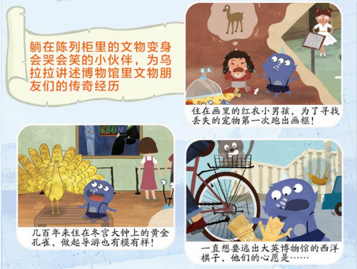 调皮可爱、富有好奇心的外星小怪兽乌拉拉,和他的爸爸妈妈蓝莫、艾莉一起,乘坐一艘奶酪飞船,来到地球旅行。在《世界博物馆奇妙之旅》系列故事中,乌拉拉一家深入探访了卢浮宫博物馆、冬宫博物馆、大英博物馆、大都会艺术博物馆、故宫博物院五大世界博物馆,带领小读者在想象力飞扬、跌宕起伏的故事和游戏里,近距离体验被时光封存的历史故事和人文风情。