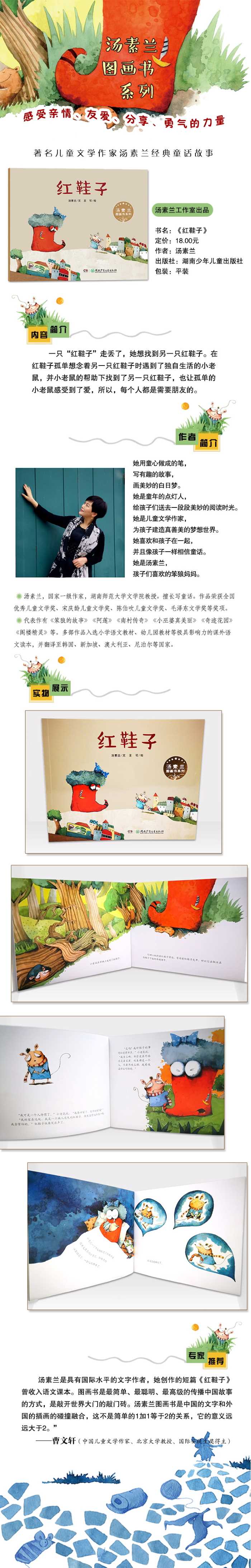 “汤素兰图画书系列”系列共8本。文本选自著名儿童文学作家汤素兰创作的8篇经典童话故事,这些故事涵盖了不同的主题,如亲情、成长、勇气和爱等,都蕴含了一定的深意和哲理,是一套关注儿童心灵成长的图画书。本套丛书由4位中国画家、4位东南亚画家共同精心绘制,多位画家曾斩获国内国际多项大奖。小读者将在优美的文字和精美的图画中接受艺术的熏陶,养成良好的品格。
