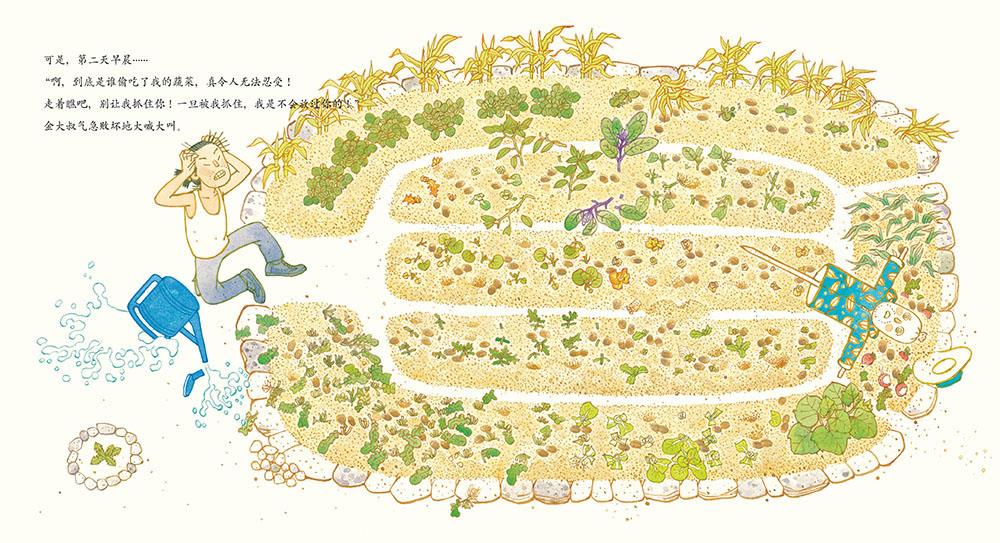 讲述了在森林中种菜的画家金大叔和毁了他菜地的小鹿之间的故事。有一天,金大叔发现自己为妻子和儿女种的蔬菜被小鹿吃掉了许多,他在生气的同时想了许多“对策”但都失败了,最后他终于想出一个“妙计”……
