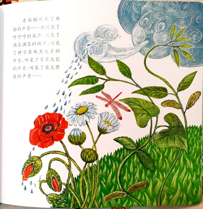 杨红樱童话绘本”以杨红樱充满诗意和人文关怀的短篇童话为蓝本,邀请法国有名版画家艾莲娜·勒内弗以专享的画风和深厚浓烈的感情精心配以插图,形成大气精致的绘本系列。杨红樱的童话纯美温暖,如同晶莹剔透的水晶,唤醒人性深处尘封已久的善良与爱。在天然去雕饰的故事之中,跃然纸上的童真童趣变得意味深长。杨红樱文、艾莲娜·勒内弗图的这本《木耳》主要讲述了:蓝天下有一棵老枯树,他只有粗壮的树干和伸展的枝丫,却没有一片象征生命的绿叶。一场春雨过后,老枯树那历尽沧桑的树皮上长出了一朵小小的、透明的木耳,老枯树听见了外面的声音。经历了失望与伤心,听过了一个又一个声音,DANG*当又一个春天来临时,老枯树获得了新生。