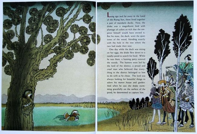 In a tale illustrated by paintings in the style ofeighteenth-century Japanese woodcuts, servants of a greedy lord aresentenced to death after they release a mandarin duck that the lordhad captured. Reprint. H. AB. PW.