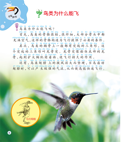 本册为《鸟族趣闻》。在这一分册中,你可以和我们一起走进鸟语花香的大自然,认识众多奇特的鸟,还可以获得很多关于鸟类的百科知识,如,鸟类为什么能飞?鸟的羽毛为什么是五颜六色的?孔雀为什么开屏?成为一个博学的鸟类小专家。