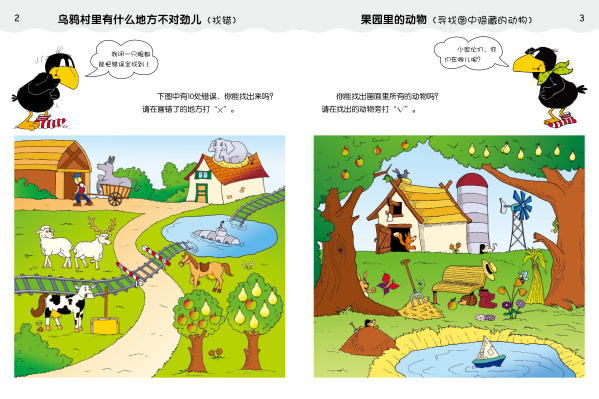 12大主题,带给孩子全面的常识启蒙。认识自然与社会,是孩子成长的必需。本书将购物、农场、动物、工作等常识巧妙融入题目与画面中,让孩子在做题过程中了解日常的薯条与面包来自于何处,钱的用途及取钱设施,怎样过马路才是最安全的,不同的职业分别对应着怎样的生活,等等。