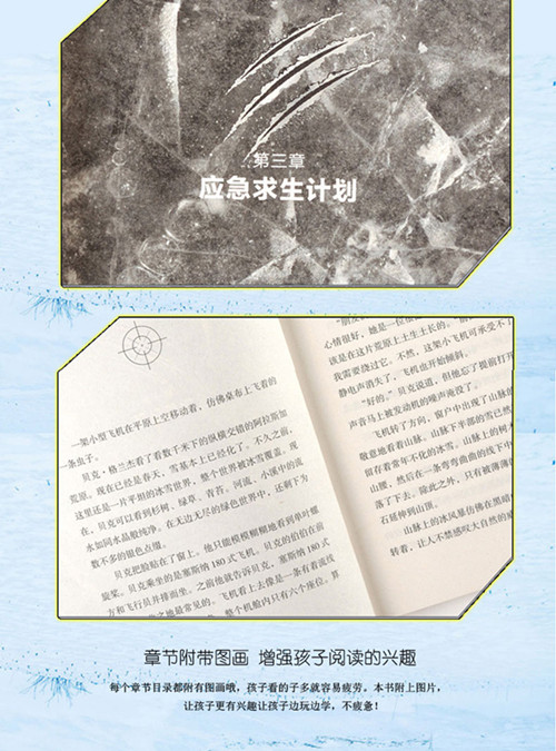 提到贝尔·格里尔斯的名字,很多人都不会陌生,他就是《荒野求生》节目主持人、为挑战危险和死亡而生的野外生存探险专家,被誉为“站在食物链*的男人”。看过贝尔节目的人,无不折服于贝尔那惊人的野外生存能力和强大的觅食能力,这个彪悍卓绝的男人在各种艰苦的环境中奋力生存,为我们展现了人类所能达到的求生极限。 不过,很多人都没有注意到,刚过完40岁生日的贝爷,已臻不惑之年。这个铁骨铮铮的硬汉,也已经有了三个可爱的儿子,一身彪悍硬气的外表,掩藏不住他对孩子那颗柔软的、充满爱的心。 从2008年起,贝尔·格里尔斯就开始为广大少年儿童,同时也为自己三个儿子创作“荒野求生少年生存小说系列”,他将自己丰富的野外生存经验融入精彩的少年历险小说,塑造了少年探险家贝克这样一个经典形象,在动人心魄的故事情节中,生动描述了上百种简洁而实用的求生技巧,并传递了野外求生的永恒的法则“永远保持微笑,只要活着就有希望”,引领孩子们在危险环境中,镇静从容,险境求生。 贝尔认为,“和看电视节目相比,阅读是一种更加更注重个人感受、更加贴近真实感的一种体验。对孩子来说,阅读可以鼓励他们,教会他们什么是生命的价值,让他们珍惜友情,勇于冒险,并且学会可以救命的求生技能。”这也是他创作这套小说的原因之一。作为“荒野求生少年生存小说系列”的责编,我们也衷心的希望,有更多的孩子通过本书获益,除了学会必要的生存技能,还能在成长道路上,永远保持乐观的精神和积极的态度。