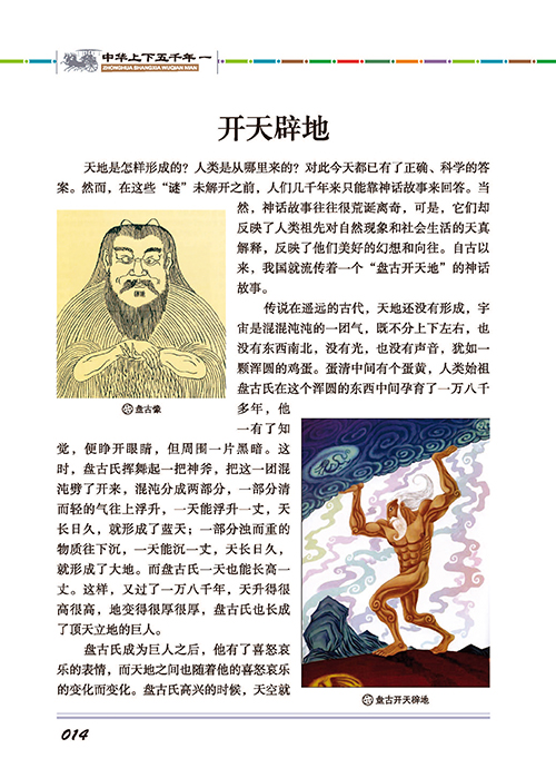 《中华上下五千年(共4册)》是一 本故事化的历史读物,描述了中国从远古的神话时代 到中华人民共和国成立的历史进程。《中华上下五千 年(共4册)》涵盖了政治、军事、文化、科技、艺术 等诸多领域,选取了历代最重要的事件和人物,用生动浅显的语言描绘出波澜壮阔的历史场景,勾勒出 性格鲜明的历史人物,全方位地展现了中华民族的历 史发展轨迹。