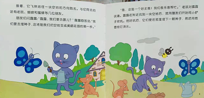 《露露的秘密花园》露露是一只可爱的小猫,很喜欢花和植物。 有一天,它的脑海里突然冒出了一个想法:我应该打造一个属于自己的花园, 明年春天的时候,我的花园将开满鲜花, 长满各种各样的植物。随后露露找来了种子和各种工具开始种花,朋友们知道了也来帮忙,露露还得到了奶奶的鼓励和支持。经过辛勤的劳动,在春天到来的时候,露露的花园里开满了鲜花,露露和朋友们都非常高兴。为迎合孩子们注意力集中时间短的特点,每个故事语言简洁、情节完整,有极强的代入性,家长们可以将本书作为宝宝睡前读本,每天阅读几个小故事,潜移默化,帮助孩子健康成长。