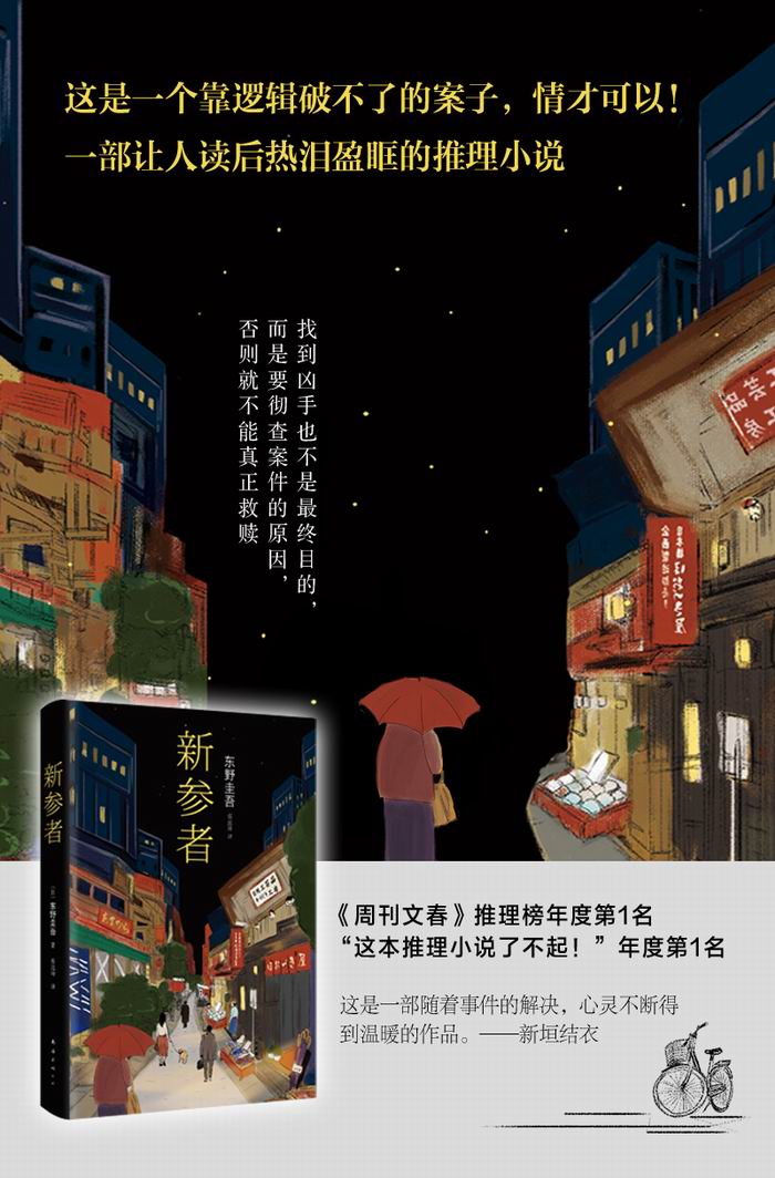 《新参者》是日本著名作家东野圭吾的长篇小说,一部让人读后热泪盈眶的推理小说,讲述了一个靠逻辑破不了的案子,情才可以。获得《周刊文春》推理小说榜年度第1名, “这本推理小说了不起!”年度第1名。