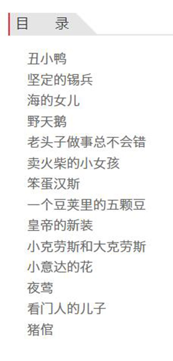一部真正可以从小读到老的书。世界童话文学创始人安徒生历时近40年创作而成。 其中广为流传的故事包括《海的女儿》《皇帝的新装》《丑小鸭》《卖火柴的小女孩》等。这些故事流传百年,经久不衰。 安徒生童话追求真、善、美,处处体现着爱的真谛。它不仅能让人感受到童话世界的纯真和美好,还会让人明白许多道理。在生活中,我们也要拥有那些主人公们的优秀品质,如积极乐观、坚持不懈、真诚博爱、谦逊勤勉等。