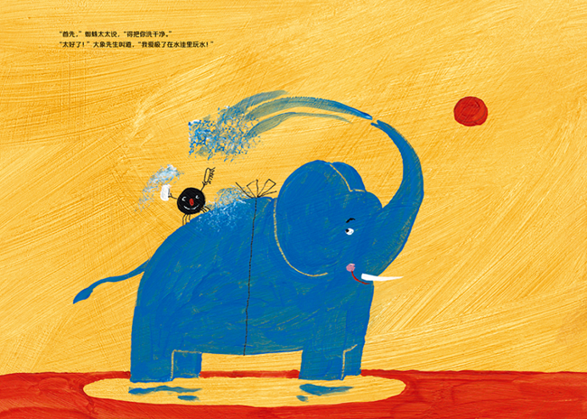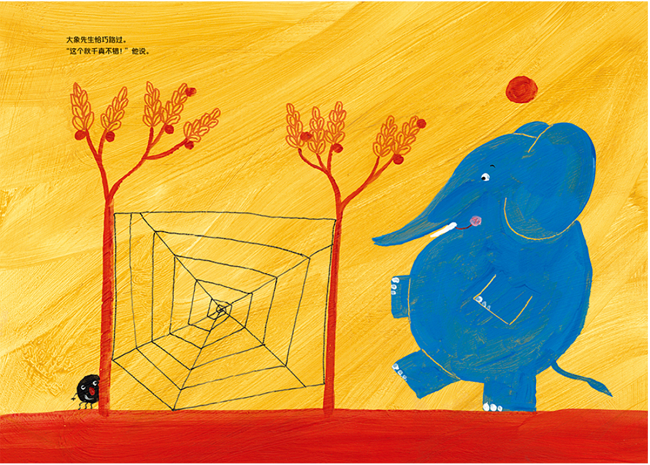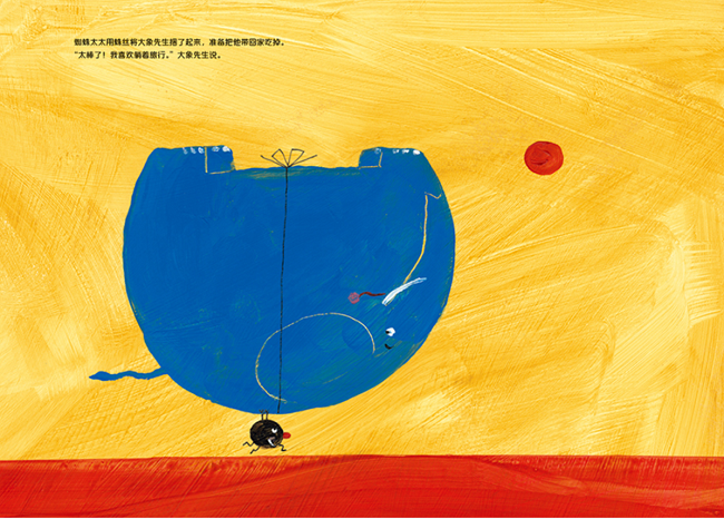 这是一个温柔而滑稽的美妙故事。蜘蛛和大象,一个小一个大,组成了一对令人捧腹的搭档。本书插画构图简洁,颜色鲜艳温暖,堪称优秀的色彩启蒙图画书。 ——法国《妈咪宝贝》杂志