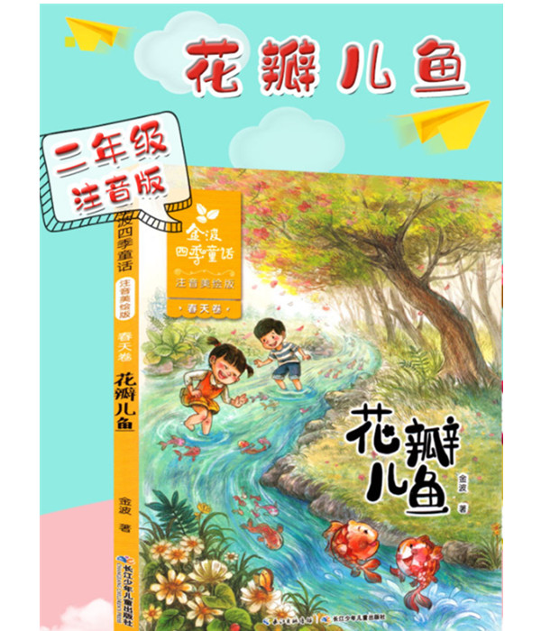 《花瓣儿鱼》:本书是《金波四季童话》系列之一。这些童话故事以春季广大的自然界为背景,以自然界中活跃的生灵为主人公,以它们之间的生活故事展开,想象力丰富、情感纯净,再加上诗意的叙述语言,展现了爱与和谐的主题。本册收录了《怪手杖》《雨人》《根鸟》等金波的代表作品。