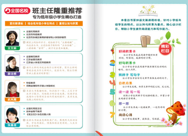 大字排版,字体优美,并加注了标准的拼音。好词用彩色字体标出,醒目而活泼。