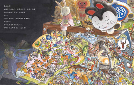 作为找找看类的绘本,设定和构成都很幽默。画面中有十本以上的书打开并重叠摆放,每一本中的故事都清晰地画了出来。阅读完后,有阅读完许多本书的满足感。——5岁孩子的妈妈