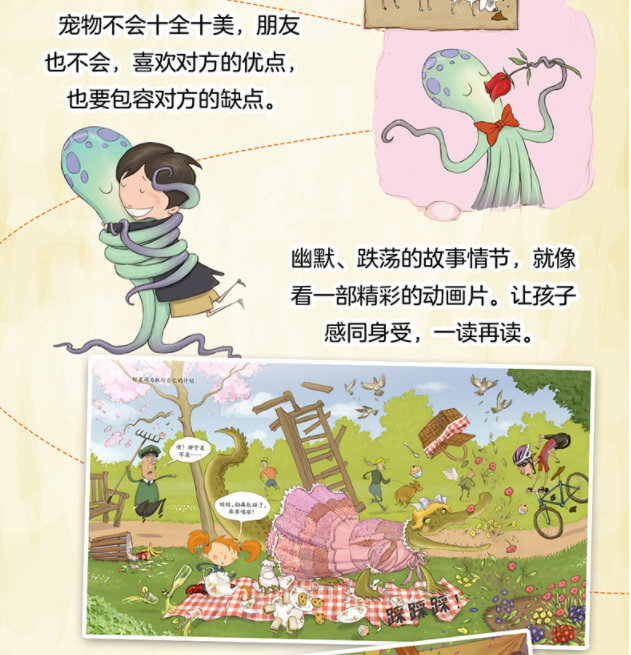 本书为故事绘本,阿德莱德是一个什么都想做的小女孩。有一天她在做蛋糕的时候从一个蛋里打出来一只小鳄鱼,阿德莱德太高兴了。但问题来了,家里人不让她养宠物,她只能把鳄鱼打扮成洋娃娃的样子。开始的时候很顺利,但随着鳄鱼一天天长大,它不但体形变大了,也经常会闯祸,于是镇上的人们要求阿德莱德把鳄鱼处理掉。阿德莱德不想失去鳄鱼朋友,最后她想到了一个办法,让鳄鱼去垃圾处理场工作,鳄鱼的工作得到了大家的认可,它又可以留在阿德莱德的身边啦!