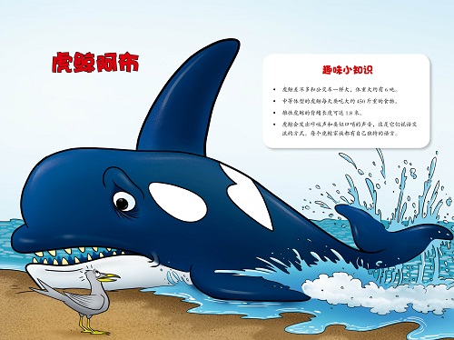 虎鲸,也叫逆戟鲸,或者杀人鲸。很多人以为它是鲸鱼,其实它是海豚的一种,是世界上*的海豚。虎鲸差不多和公交车一样大,体重大约有6 吨,如果虎鲸不幸在沙滩上搁浅,它就会因为缺水而死亡。阿布是家族中个头*的虎鲸,他搁浅了!会有谁来救他呢?