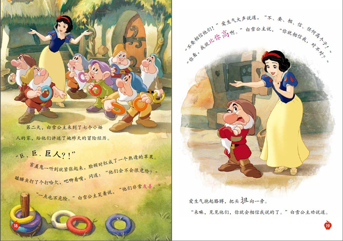 爱生气这位小矮人因为巨人们身材高大而不愿和他们交朋友。白雪公主决定办一个聚会让他们互相认识一下。在一起做了白雪公主精心设计的游戏之后,七个小矮人和三个大巨人发现大家都有两只眼睛、两只耳朵和一个鼻子,共同的特点让他们拉近了心与心的距离,接受了彼此外貌上的差异。爱生气最终放下了偏见,学会了尊重朋友和自己不一样的地方,收获了珍贵的友谊。
