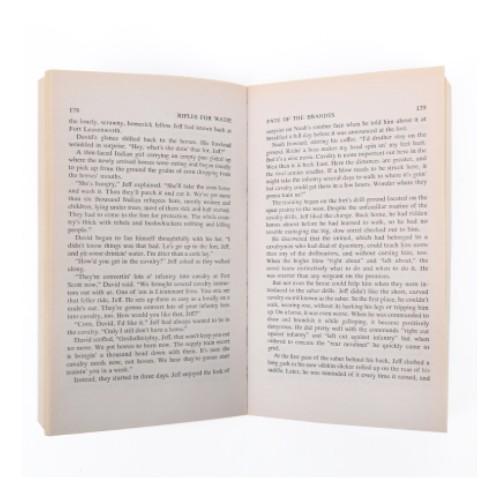 Jeff Bussey walked briskly up the rutted wagon road toward Fort Leavenworth on his way to join the Union volunteers. It was 1861 in Linn County, Kansas, and Jeff was elated at the prospect of fighting for the North at last. In the Indian country south of Kansas there was dread in the air; and the name, Stand Watie, was on every tongue. A hero to the rebel, a devil to the Union man, Stand Watie led the Cherokee Indian Na-tion fearlessly and successfully on savage raids behind the Union lines. Jeff came to know the Watie men only too well. He was probably the only soldier in the West to see the Civil War from both sides and live to tell about it. Amid the roar of cannon and the swish of flying grape, Jeff learned what it meant to fight in battle. He learned how it felt never to have enough to eat, to forage for his food or starve. He saw the green fields of Kansas and Okla-homa laid waste by Watie’s raiding parties, homes gutted, precious corn deliberately uprooted. He marched endlessly across parched, hot land, through mud and slash-ing rain, always hungry, always dirty and dog-tired. And, Jeff, plain-spoken and honest, made friends and enemies. The friends were strong men like Noah Babbitt, the itinerant printer who once walked from Topeka to Galveston to see the magnolias in bloom; boys like Jimmy Lear, too young to carry a gun but old enough to give up his life at Cane Hill; ugly, big-eared Heifer, who made the best sourdough biscuits in the Choctaw country; and beautiful Lucy Washbourne, rebel to the marrow and proud of it. The enemies were men of an-other breed—hard-bitten Captain Clardy for one, a cruel officer with hatred for Jeff in his eyes and a dark secret on his soul. This is a rich and sweeping novel-rich in its panorama of history; in its details so clear that the reader never doubts for a moment that he is there; in its dozens of different people, each one fully realized and wholly recognizable. It is a story of a lesser—known part of the Civil War, the Western campaign, a part different in its issues and its problems, and fought with a different savagery. Inexorably it moves to a dramat-ic climax, evoking a brilliant picture of a war and the men of both sides who fought in it.