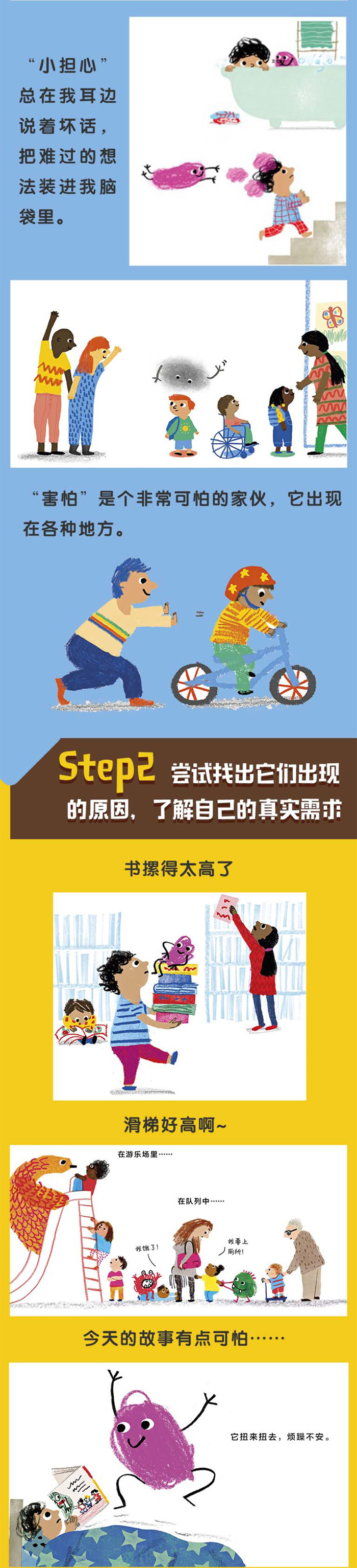 当你感到担心时会发生什么?有一种叫“小担心”的小怪物是不是总是围绕在你身边?它让你吃不香、玩不好、睡不踏实,这也担心,那也担心。它会跟着你去任何地方,而且它很容易饿,会以担心、恐惧为食;它渴的时候,会用吸管吸你的眼泪;它总是对你说一些带有负面情绪的话,在你的脑海中留下令人悲伤的想法……它不喜欢看到你快乐的样子!它变得越来越大,以至于你很难完成任何事情。 有什么办法能帮助孩子摆脱如影随形、越变越大的“小担心”吗?幸运的是,有一位处理担心的专家知道该怎么做。让我们一起来做一些让自己放松心态的练习吧!告别你的“小担心”,重新开始享受你的生活!