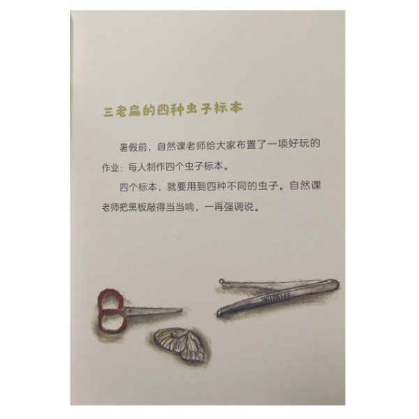 “永远长不大的三老扁”系列为三册套装,是一套合适6岁以上孩子自主阅读的桥梁童话,包含《从前有个三老扁》《三老扁大战乘法口诀》《三老扁捉虫记》三册。每册以主人公三老扁为中心展开,讲述这位“混世大魔王”的家庭和校园生活,情节幽默爆笑,结局令人啼笑皆非。书中主人公三老扁是个调皮捣蛋的孩子,也是这一年龄段孩子的典型代表:淘气活泼、爱逞强、不守规矩、到处闯祸,是家长和老师眼中的“问题小孩”。但同时,他也聪明、好奇、勇敢,“问题小孩”的外表下,其实隐藏着孩子善良的天性和成长的秘密。 《三老扁捉虫记》是“永远长不大的三老扁”系列的第三本。三老扁是班级里的捉虫小能手,他成天在野地里、草丛中乱跑,熟悉了很多不同的虫子。这天,自然课老师给大家布置了一个任务:制作四个不同的虫子标本。可是没想到,一只芦花胖母鸡偷偷溜了进来,把三老扁辛辛苦苦捉来的虫子都吃光了!恼羞成怒的三老扁该怎么办呢?他最后按时交上作业了吗?和三老扁一起,在虫子的天地中游玩探索,运用自己的智慧,解决这个小麻烦吧!