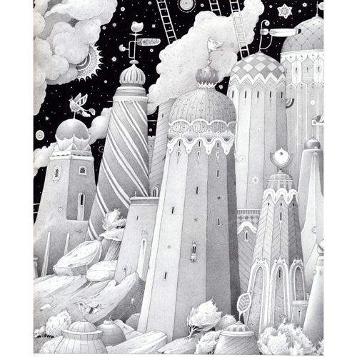 大奖插画家Einer Turkowski通过十幅想像力无边的插画,带领孩子们去观察对立的世界(梦想和现实,大地与天空,混乱和寂静…),让想像在黑与白的铅笔画中自由飞翔。